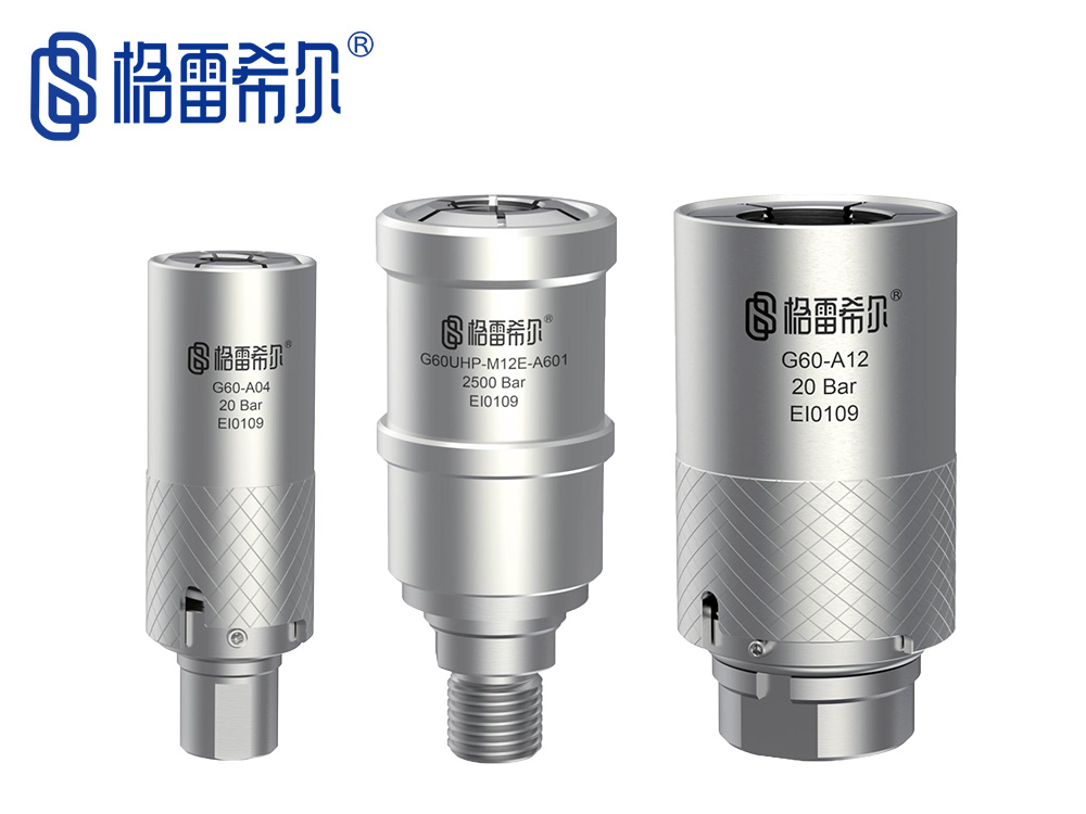 G60-A系列密封測試接頭,應用于SAE45°螺紋管件的密封連接,為了保證在使用時不被壓力沖擊導致脫落,我們設計出安全鎖功能,連接好后將安全鎖旋轉一下即可達到鎖死狀態,避免了接頭被壓力沖擊導致脫落的情況發生。(?點擊此處進入淘寶鏈接)
